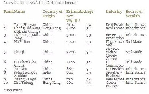 以下是亚洲“千禧一代”十大富豪: