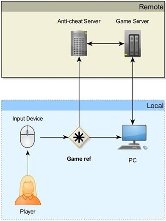 “要理解Game:ref是怎么工作的,你只要看CS中的triggerbot(自动扳机)的原理,triggerbot是一种通过软件的作弊行为,当有人在准心上时其通过模拟点击鼠标的方式来自动开火,玩家使用了triggerbot就不需要自己动手了。Game:ref其实是个很直观简单的概念,要抓到这 些自动瞄准bot需要一些数学计算,但原理是一样的。同样的,Game:ref也适用于DOTA2里的auto-hex作弊和LOL中的auto- lasthitters。” Titarenco解释道。