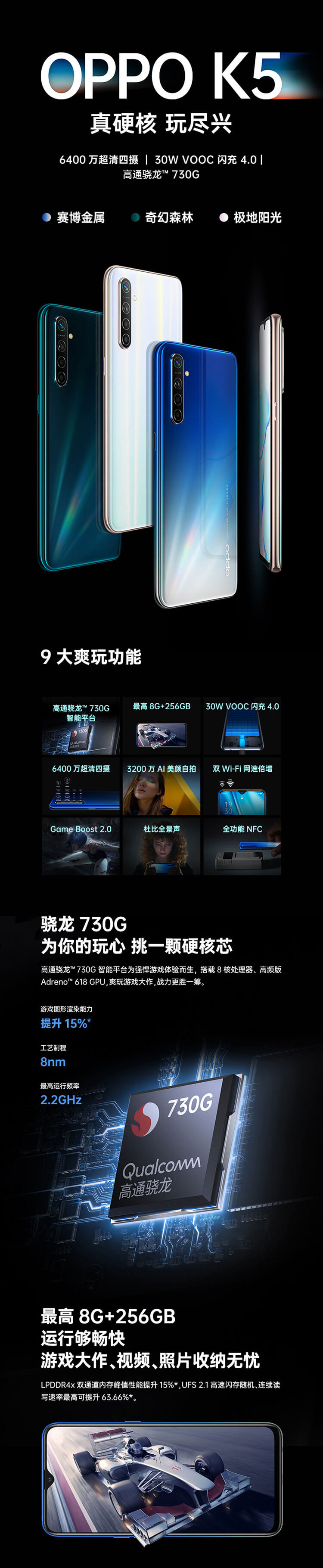 【超级爆品】OPPO K5 6GB+128GB 奇幻森林 6400万超清四摄 VOOC闪充4.0 高通骁龙730G 4G游戏智能手机